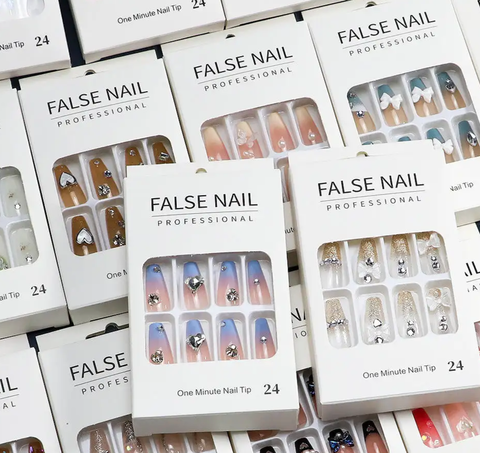 नाखून थोक 24 टुकड़ा एक्रिलिक लक्जरी झूठे नाखून निजी लेबल के साथ निजी लेबल को अनुकूलित पैकेजिंग नाखून के साथ निजी लेबल पर प्रेस