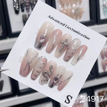 أظافر مزيفة باليرينا للبيع بالجملة أظافر اصطناعية لوازم الضغط على الأظافر محاصر بملصق خاص مخصص 24 من المسامير